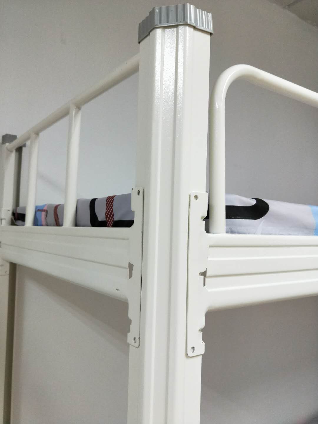 3.連接橫梁。用上述方法,將立柱與橫梁連接,連接后公寓床的基本樣子就出來了。