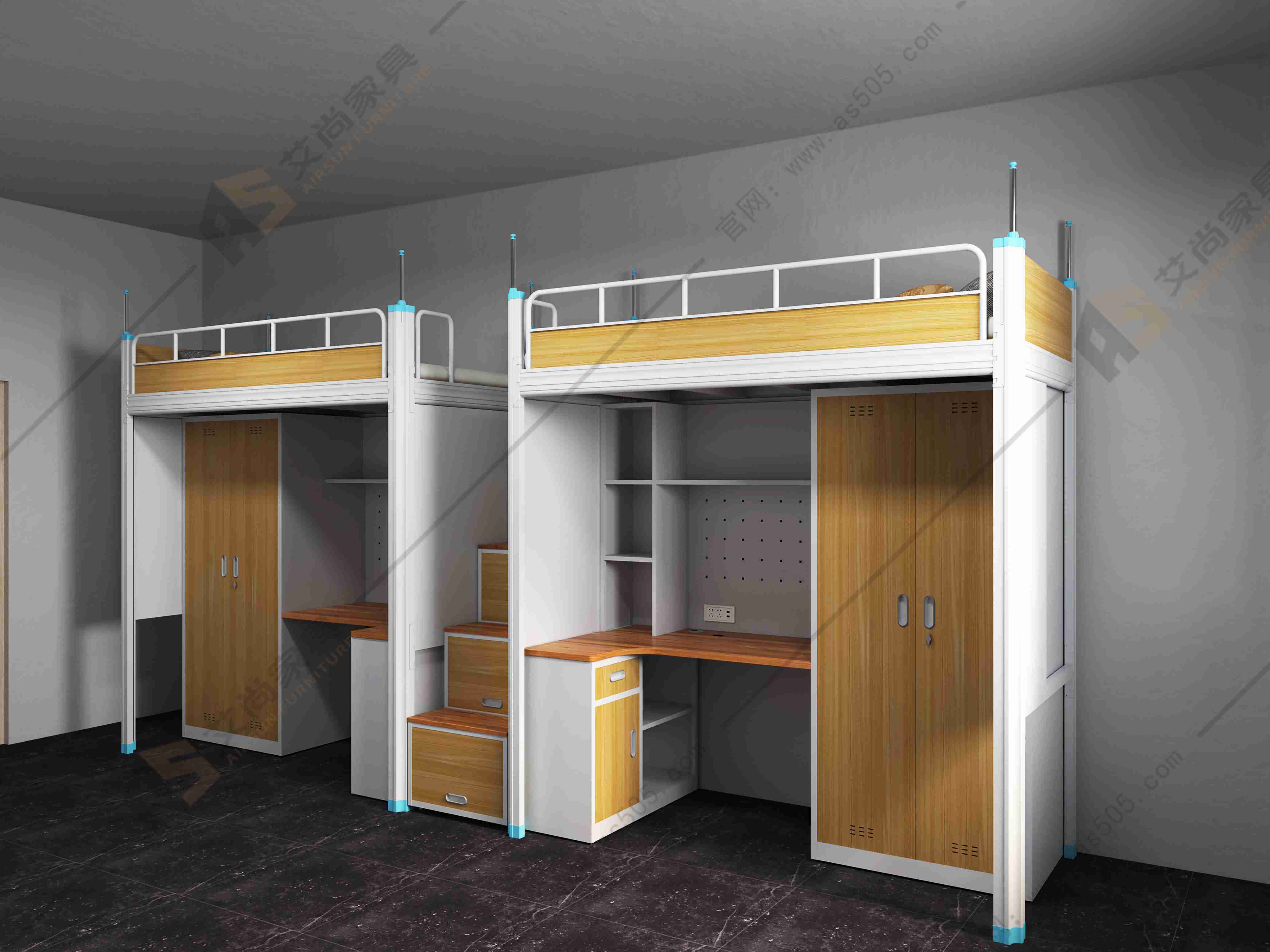 宿舍公寓床可根據(jù)您的需求定制衣柜、儲物柜、書柜等,還可配置密碼鎖,鑰匙鎖等,還可定制可調節(jié)的梯子,按房間擺放位置。和房間設計布局來改變梯子位置。