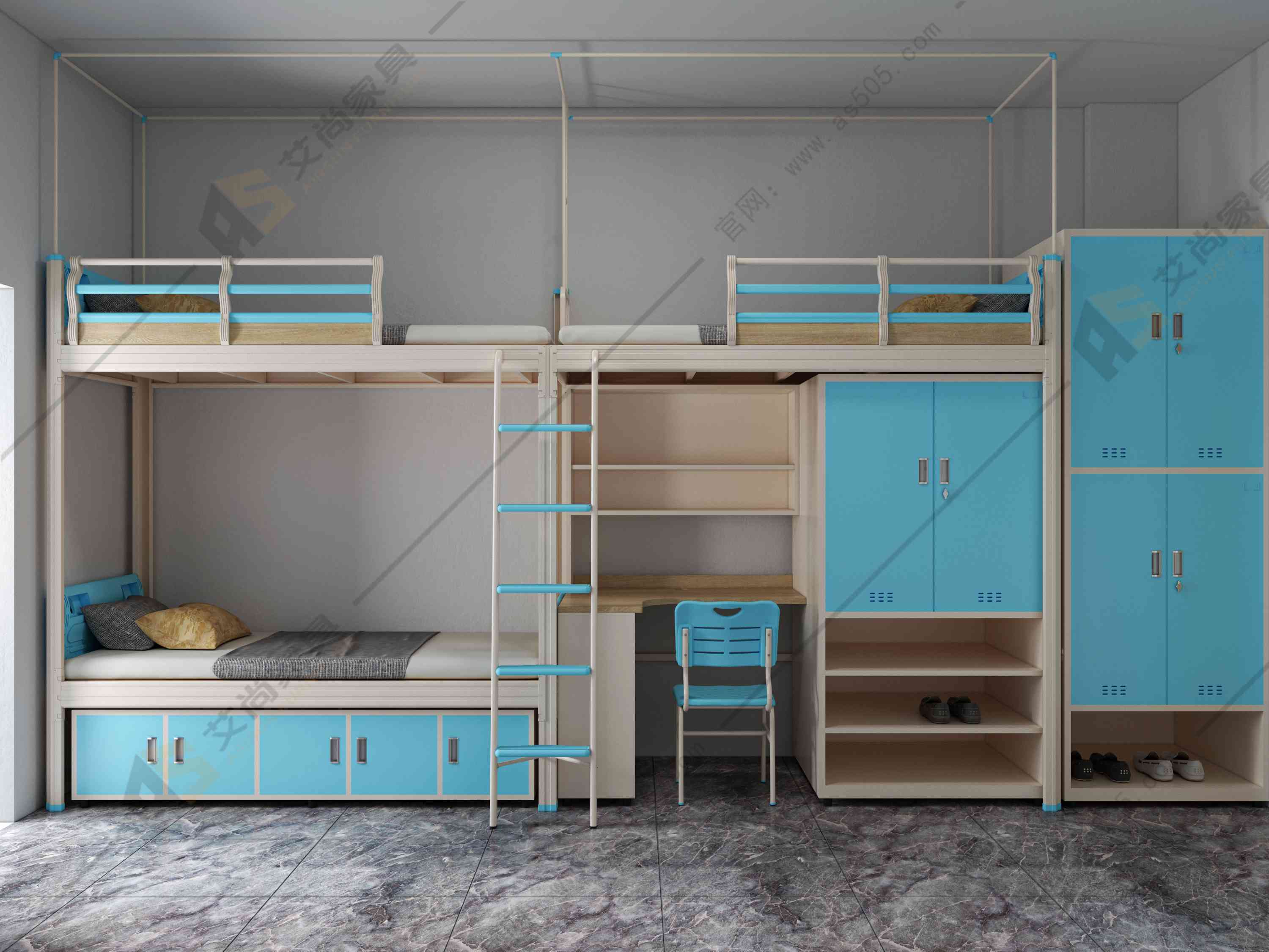 上下鐵鋪床能很大程度上影響我們休息的好壞。質(zhì)量好的雙層鐵床,一般配有好的原材料,例如采用冷軋鋼板特制成型線軋制而成,表面有多條加強(qiáng)筋,穩(wěn)固性好,讓人在宿舍床上休息時(shí)不會(huì)搖晃,或者翻身,上下床時(shí)發(fā)出吱吱的聲音,艾尚家具樓梯還設(shè)有凹凸防滑紋,配備夜光條和隱私簾。