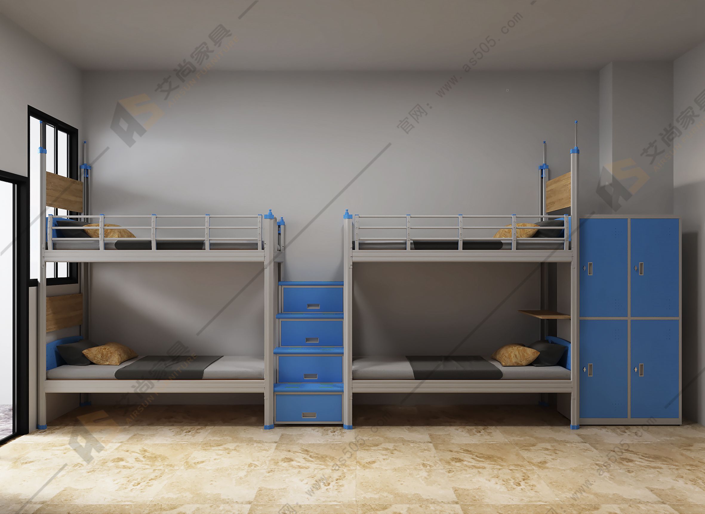 艾尚家具員工宿舍床設(shè)計(jì)以簡為主,卡扣式結(jié)構(gòu)更美觀。還配有配套產(chǎn)品、書柜、鞋柜、衣柜、書桌等。衣柜是由鋼和木頭制成的,環(huán)保耐用無異味,讓宿舍生活更加便捷。